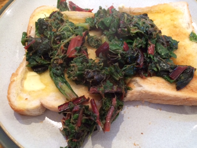 In my garden, the Chard is beginning to grow to seed; what better opportunity to try out this recipe then.